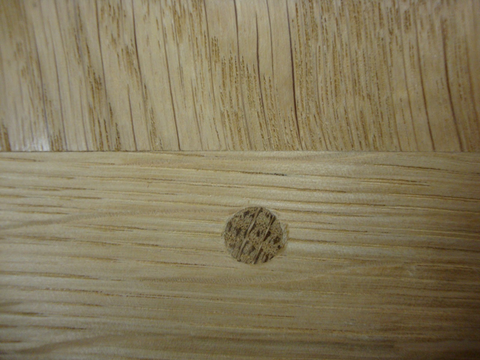 Close up of the draw bored joint with the dowel planed flush, ready for a finish sand.