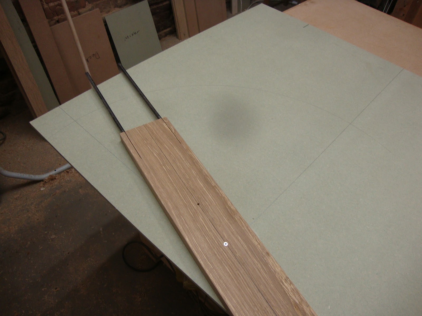 First job was to make the former for the curved corners, and that starts with a piece of 9 mm mdf and a hole.