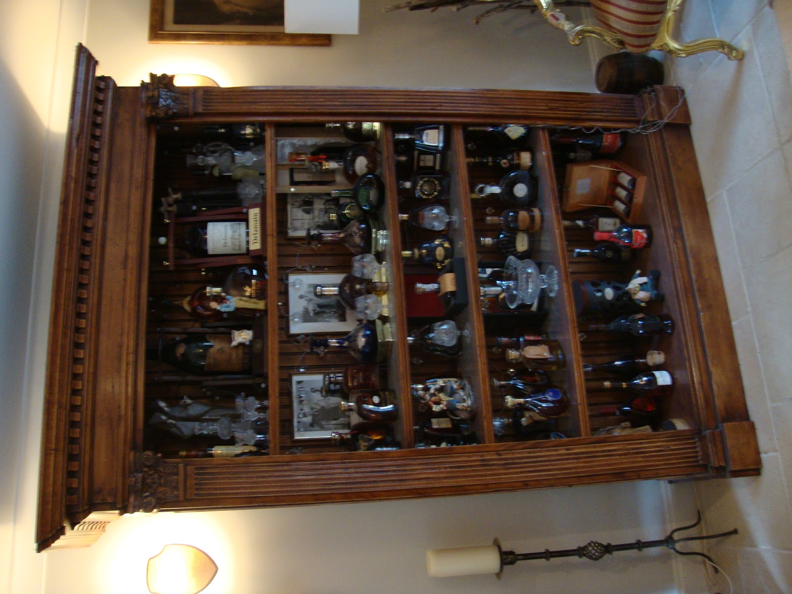 >Today when I went over to my existing clients house, to take a couple photos of the blanket chest(they didn’t want it by the way… my wife is over the moon).  But they did call me into the lounge to take a look at their Brandy collection(no I wasn’t asked to test it), now I’ve seen it before plenty of times, and every time I go past it, another bottle seems to appear, so much so, that it’s now full.  Now, I’m not going to pretend to you I know the first thing about Brandy, other than it’s quite nice to drink after a meal. But my client does, and this is part of his pension apparently…confused? me too. I had to ask, I couldn’t help it “is it worth a lot of money then squire”