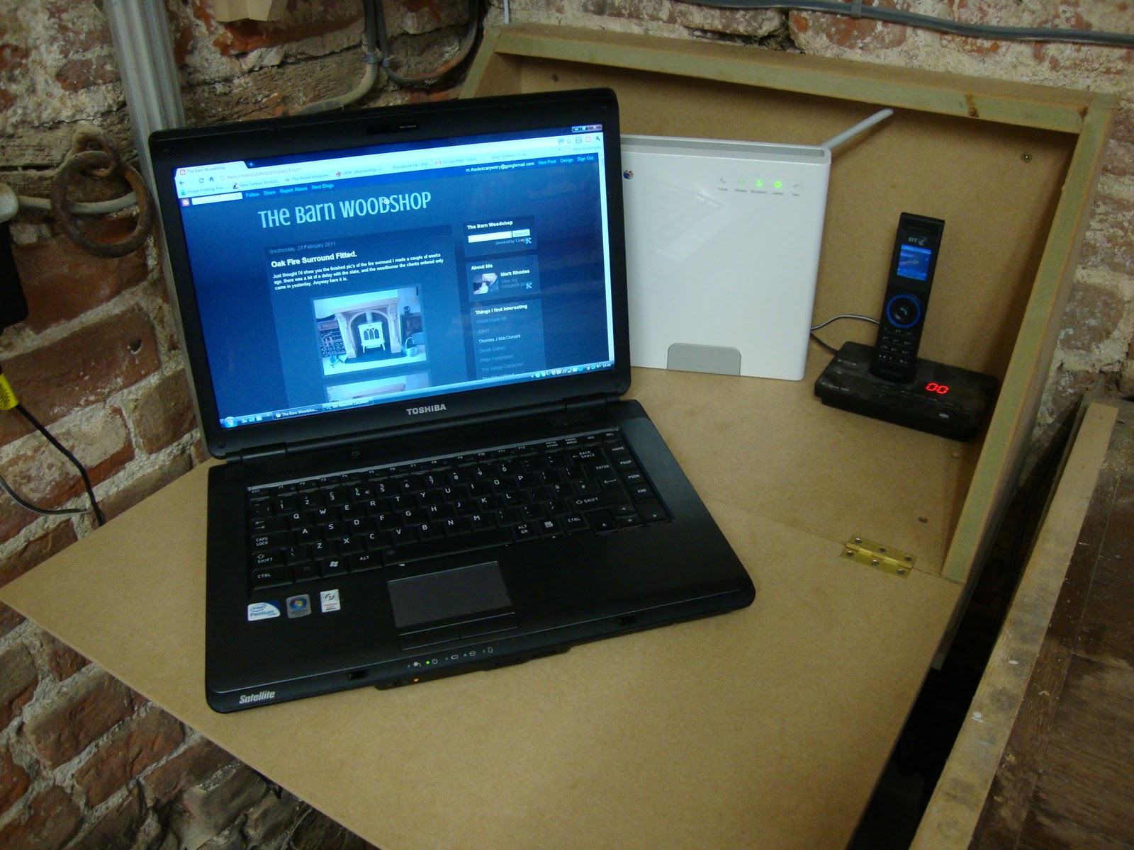 I thought it would also be a great opportunity to install the wireless hub, so I can look stuff up on-line and order, and also research of course. With the lid down it gives me a small area to price commissions, work out cutting lists, and general office bits and bobs.