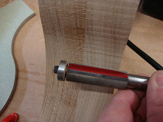 I then took the template off, and dropped the cutter as far as the router would travel, and used the previously routed edge to run against.