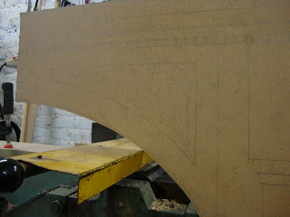 Here is some of the detail for the middle panel, not that clear from the drawing I’m afraid, but the triangular panel is to be a veneered panel with Golden Madrone as it’s face.