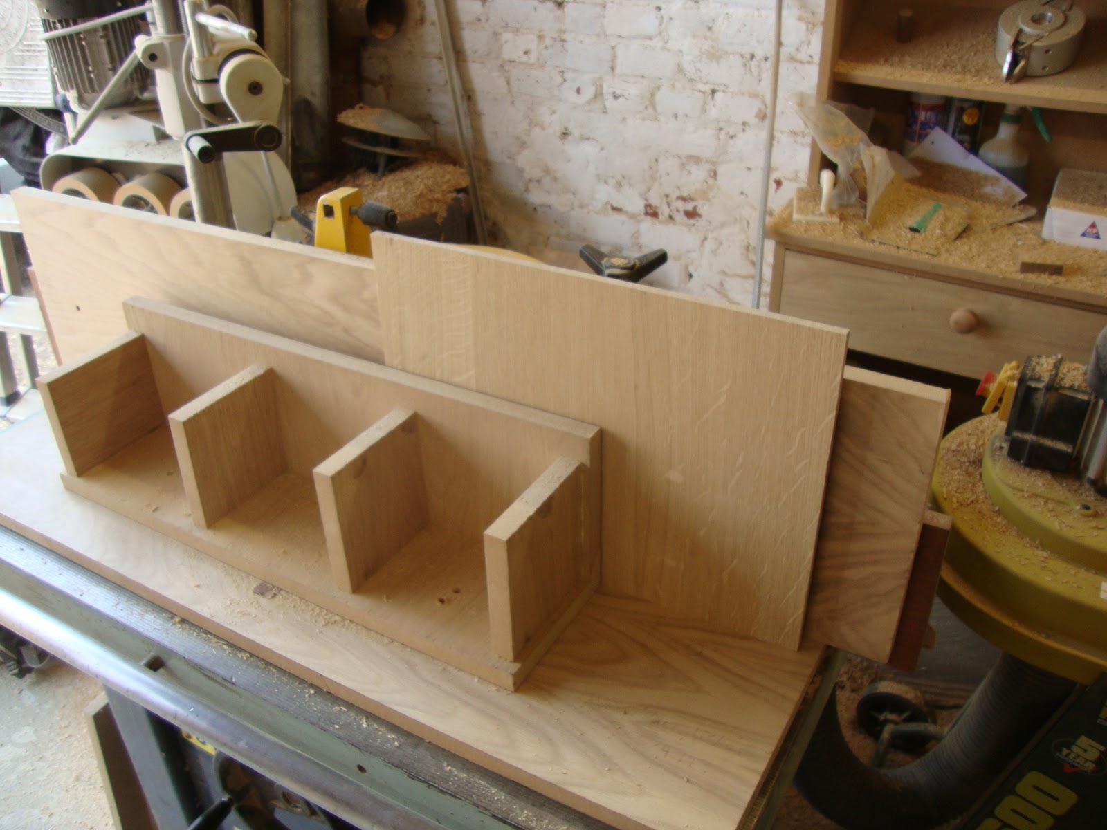 >Started on the fielded panels this morning, I profile these on my spindle moulder using an upright jig and a 12 degree cutter. here’s the set up of the jig..