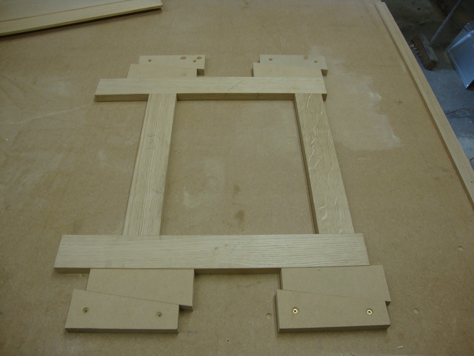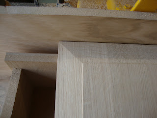 The doors need a moulded detail on the rails and stiles, so the door is held in place with folding wedges. Then the detail is routed on, I have got one of those non-slip mats for this procedure, but it always moves when you get dust on it…so its been binned.