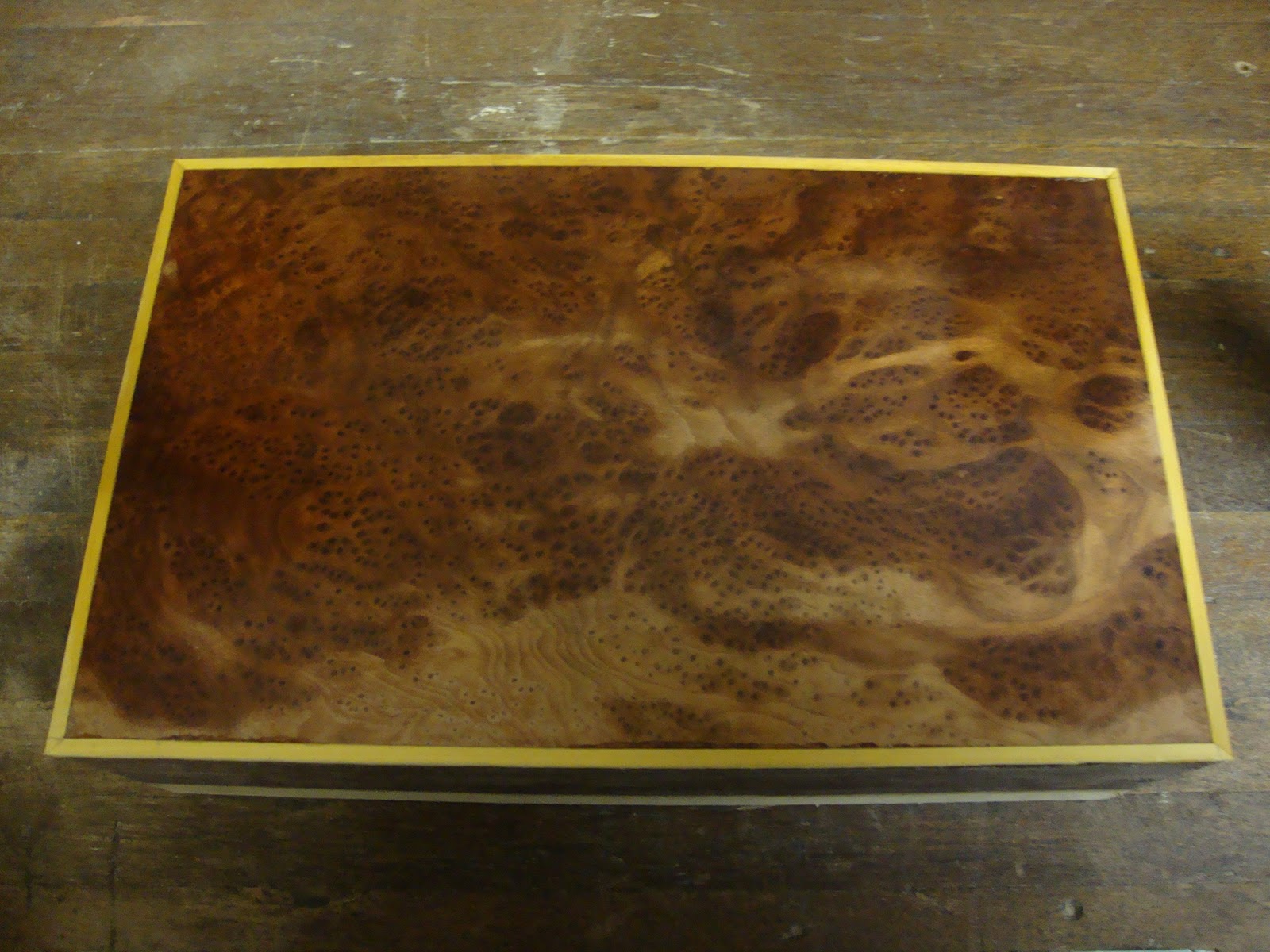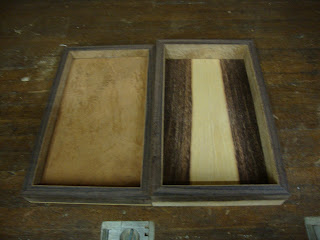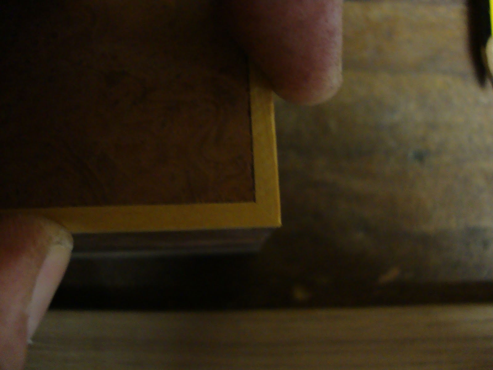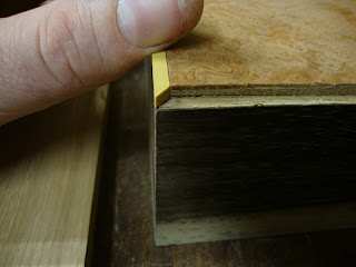 >I have had a bit more time on this today, in between coats of polish for the fire surround. So I thought I would fit the stringing and split the box. I have taken the corner out with a cutting gauge, and a shoulder plane.