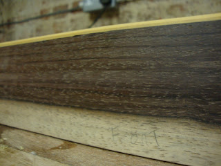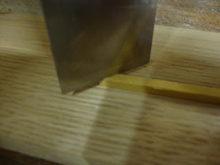 This is how I cut the mitres for the stringing, I’m using the polished back of my chisel(not that polished on the photo but it is). The stringing is made from Pequia, its a lovely mild yellow, and works really well.