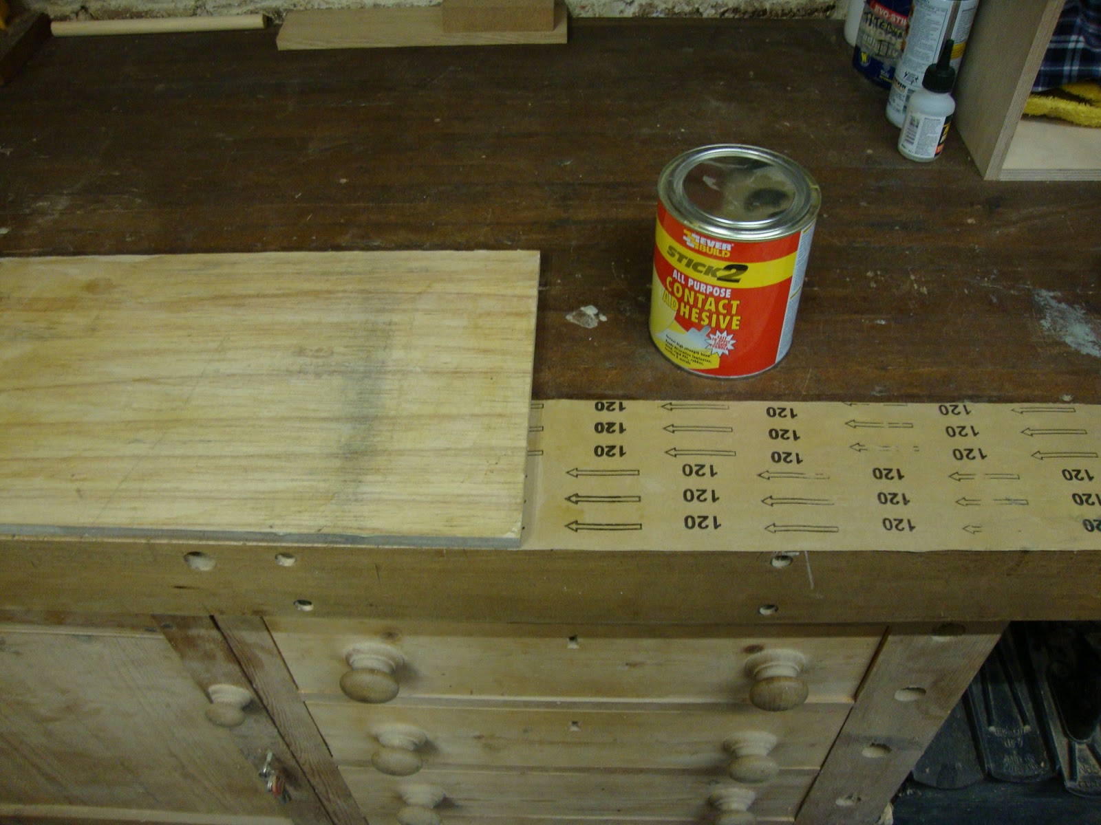 For the next step I had to make a sanding board up, to get rid of all the bandsaw marks. I’m using a contact adhesive for this.