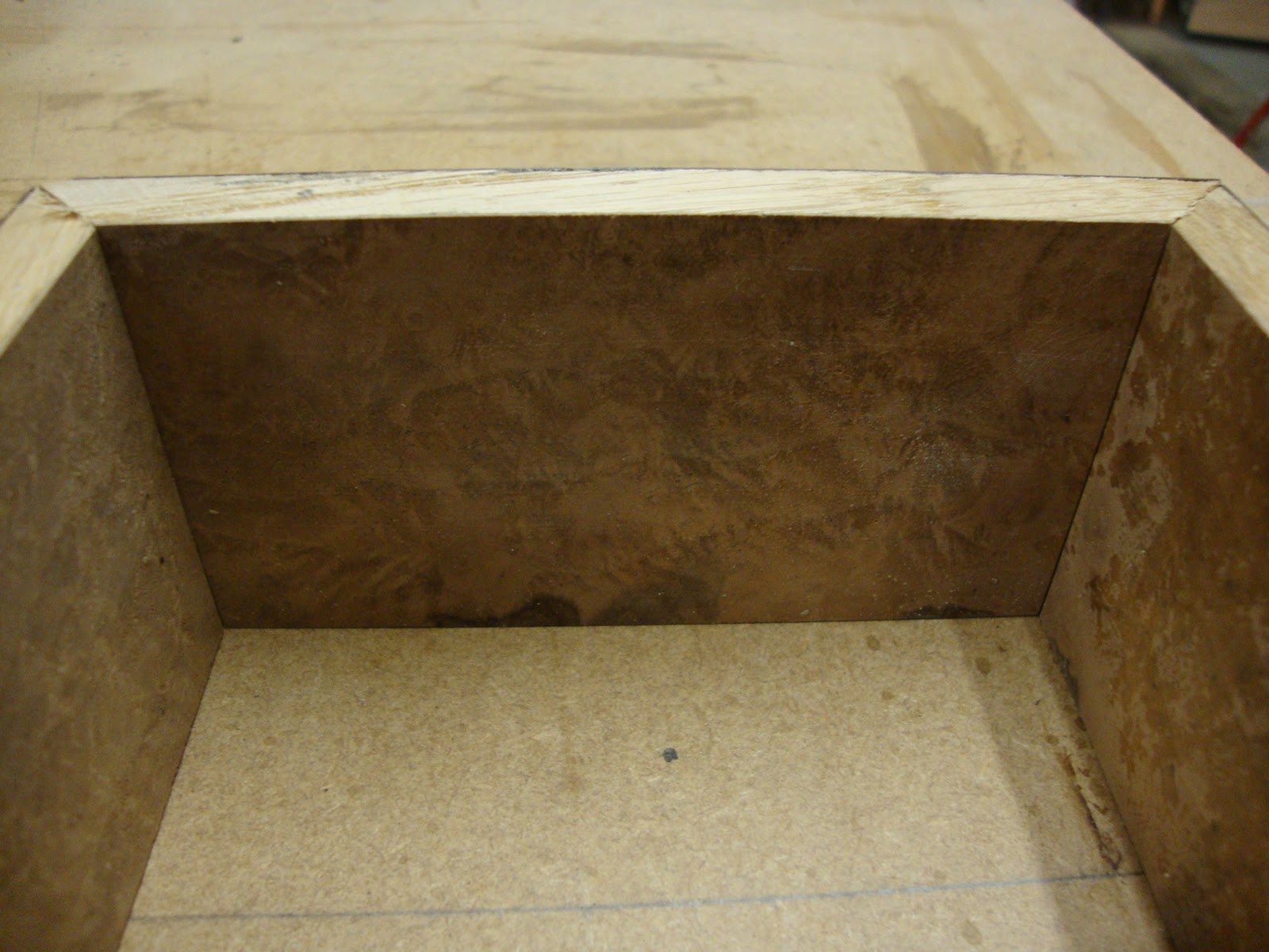 I didn’t get a picture of the veneering of the top, but the veneer I selected is a very attractive burr of unknown timber, looks, feels, and smells like mahogany(I’ve never seen mahogany burr before however). But I’m puzzled as to what it is, any ideas? I really hope to cut the box in two next week, and make a start on the interior, reminds me I must order the hardware, Thanks for looking.
