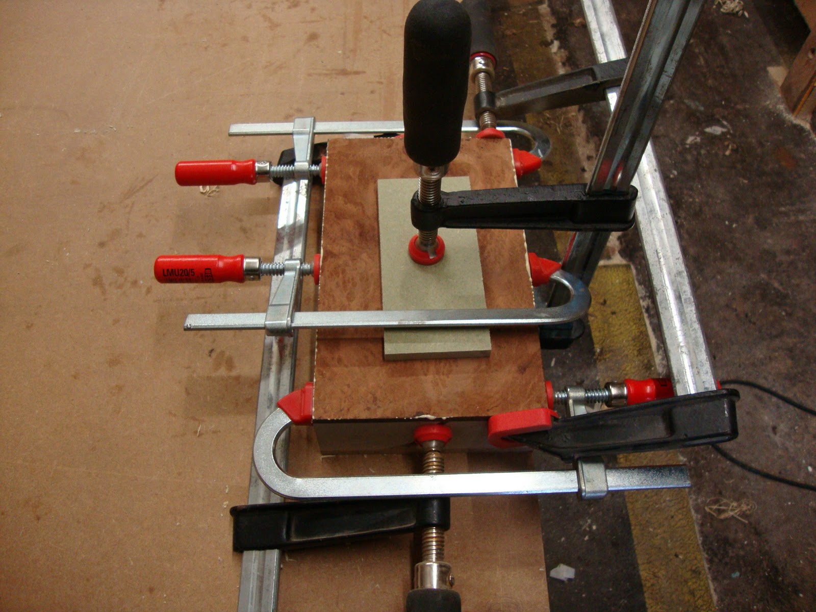 Glue up time, the cramps are there for thier weight really, as the masking tape does a very good job.