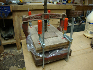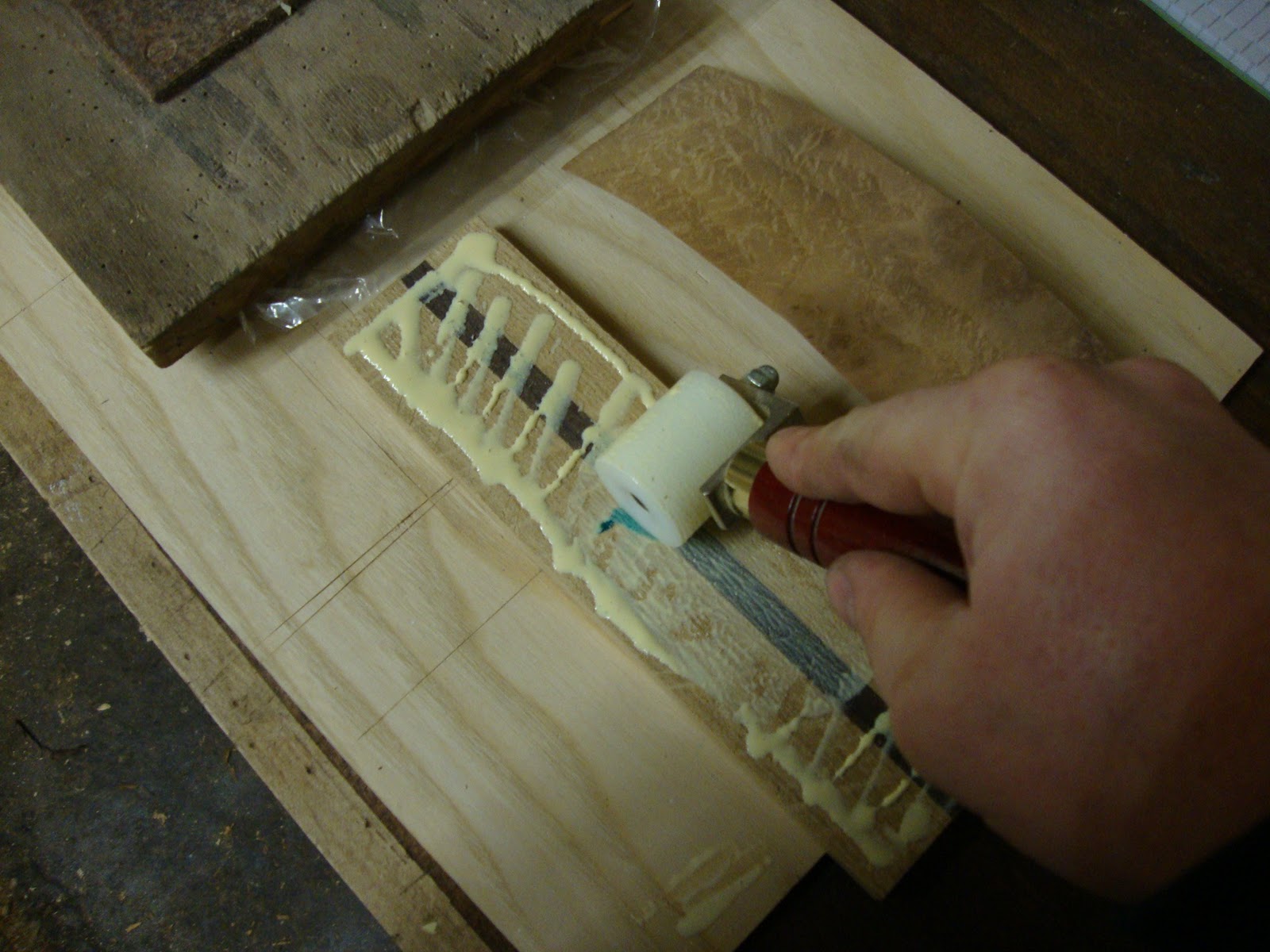 And onto the veneering, I’m using titebond II for this, with an ancient printers press(ideal for small boxes).