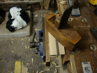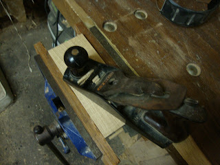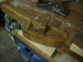 Followed by a going over with the toothing plane, this helps the veneer and glue stick to my grounds of oak.
