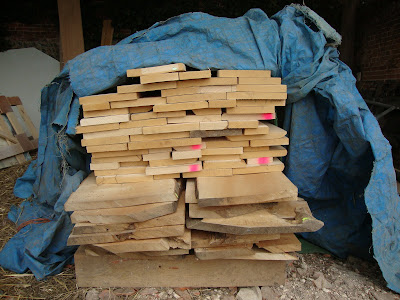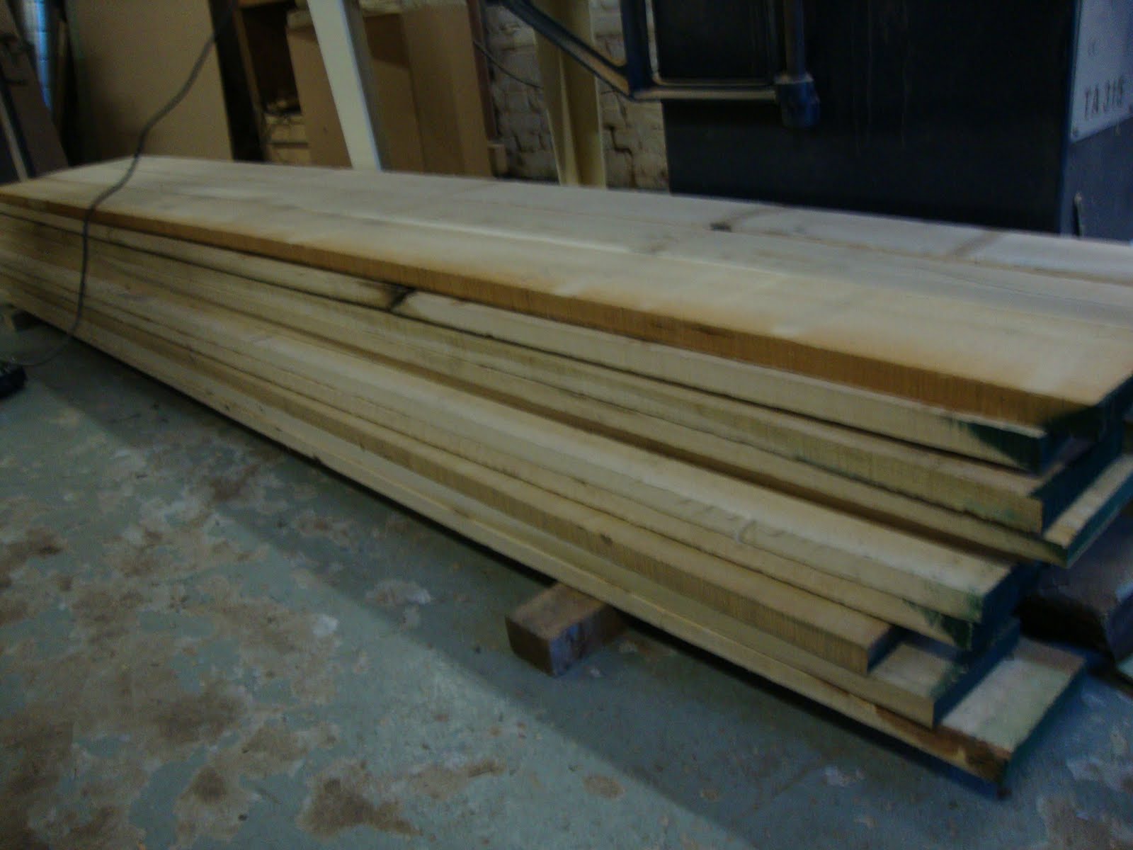 >I am about to start my biggest commission to date, one Sycamore triple wardrobe with bookcase to the side, two double European white Ash wardrobes, one painted triple wardrobe, an Ash desk, an Ash bookcase, and an Ash window seat. This is all for the same client, who lives about 12 miles from me. All wardrobes will have in total 28 handcut(more on this in another post) drawers to do, and the panels on the European Ash robes will be a bit different. I have spent the last few days ordering supplies for this commission, starting with the Oak veneered boards for the carcases which arrived Monday, and the 60cuft of Ash, Sycamore, and Poplar that arrived today(and had to be unloaded by hand because my forklift wouldn’t start). Heres a shot of the Ash and the Sycamore…