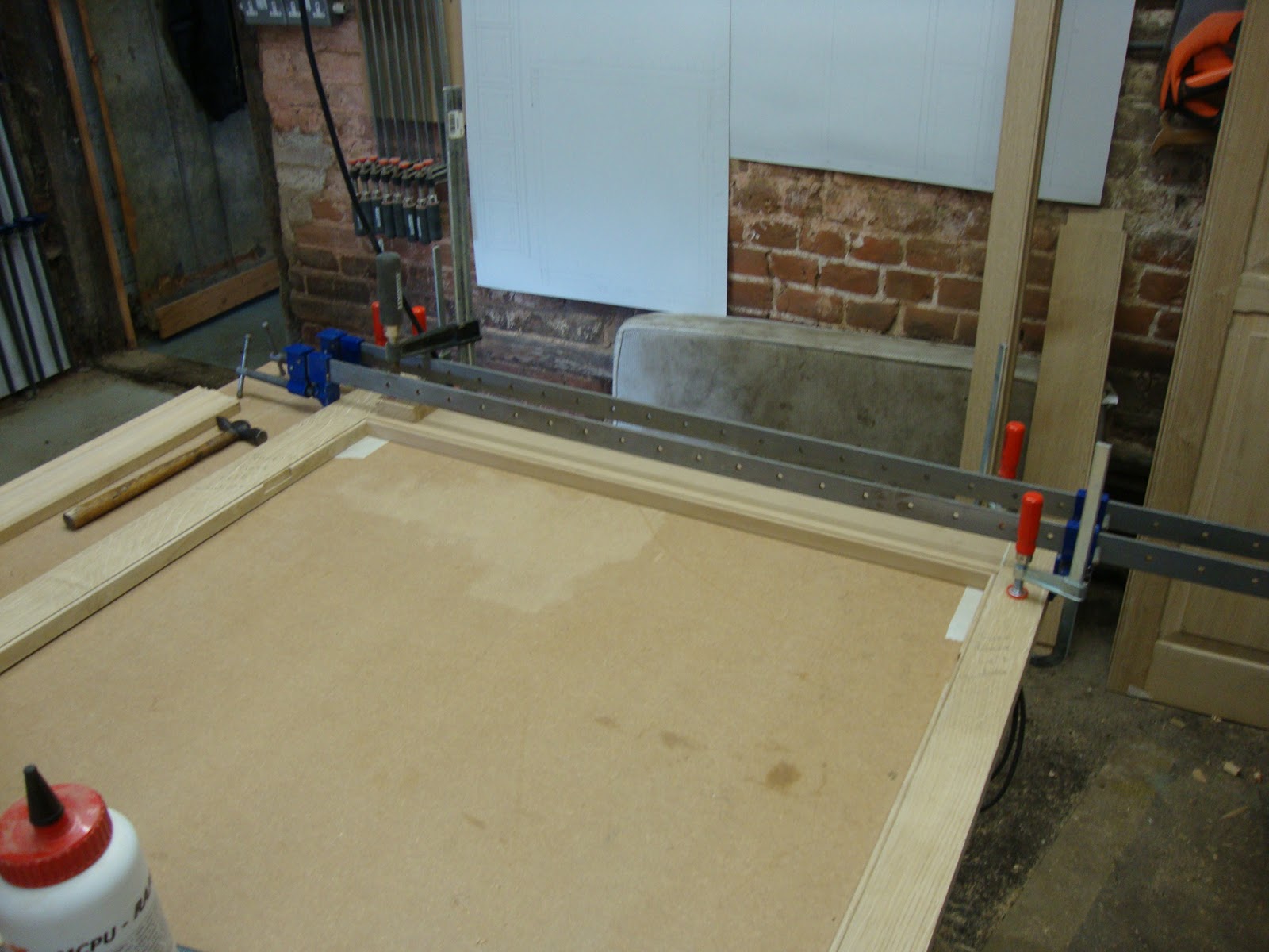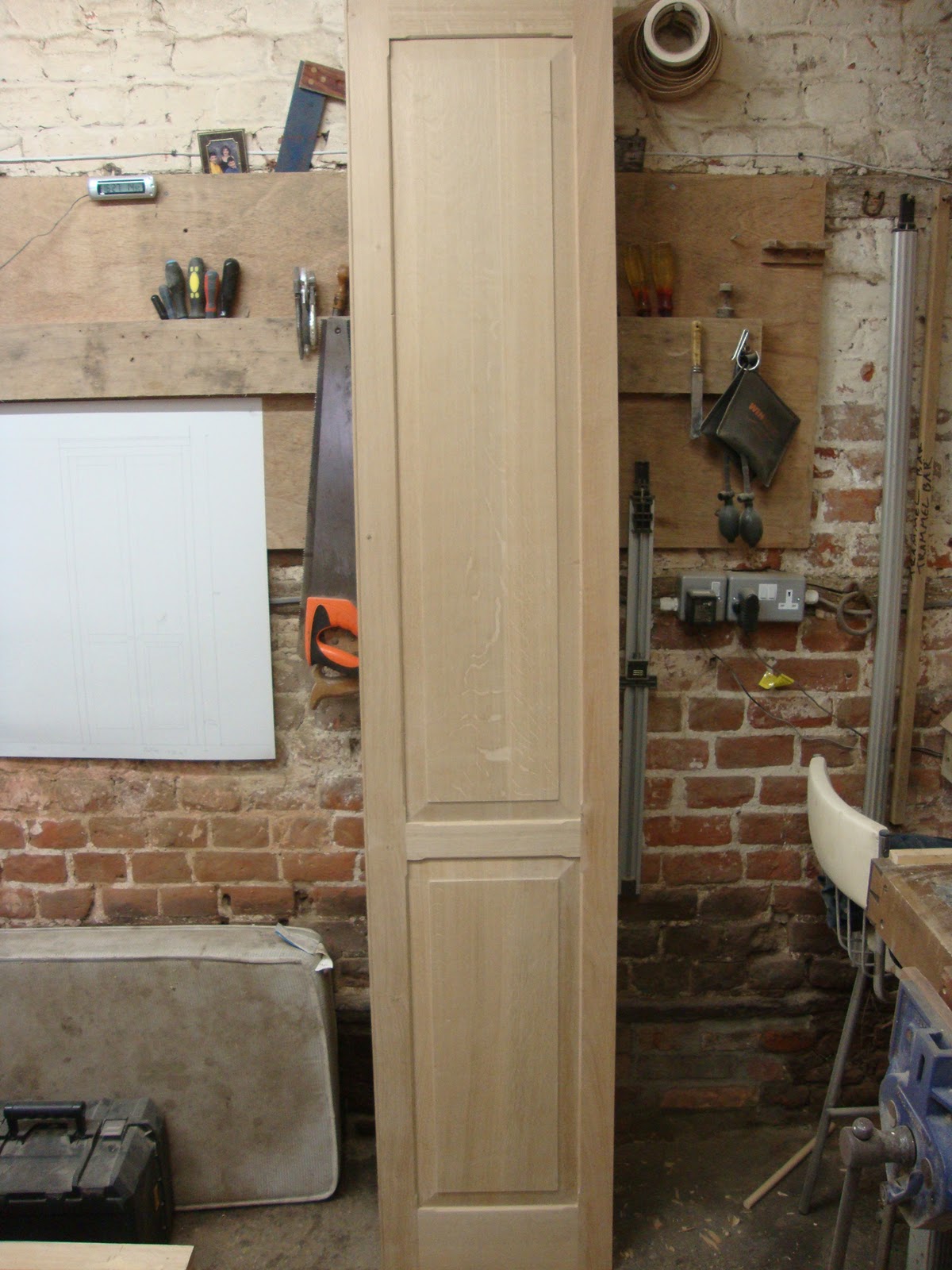 > So onto the walk in wardrobes… here are the floor to nearly the ceiling doors in dry fit. The Oak is really clean, and very mild to plane by hand.