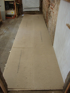 >Having seen some amazing workshop tours in the past, it must be very comforting to know that when you place a cabinet on the floor it will need minimal levelling before you can shoot the doors in ready for hanging. I’ve worked in one cabinet shop in the past where this was the case, and what a luxury it is. Now if you have been reading this Blog you will know that my currant floor in my assembly area is far from level, so today I decided to do something about a small portion of this. I need a longish run for placing wardrobes on, I have quite a few to do so I don’t want to keep checking they are level when I’m assembling them.